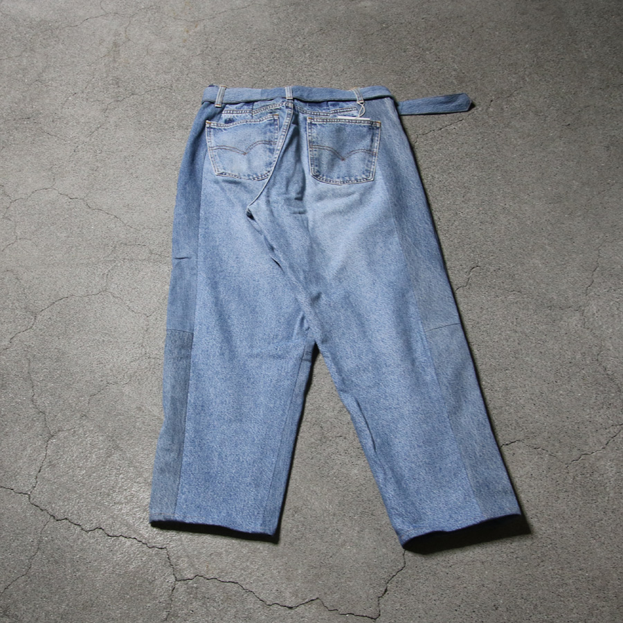 ユーズドのLEVI'Sのデニムを解体してベルテッドワイドデニムへ再構築した
