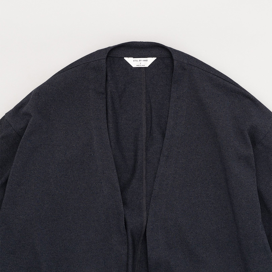 STILL BY HANDよりボタンレスでミニマルなデザインが印象的なカーディガン、