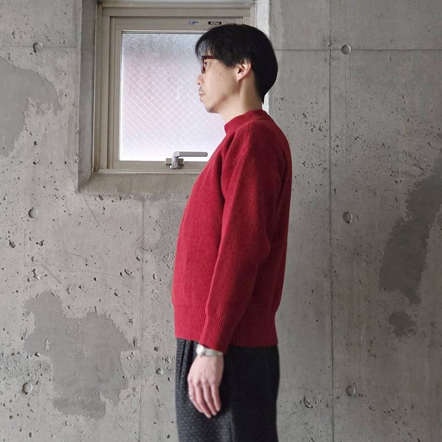 ヤクの毛とシェットランドウールを使用しており、ニット特有のチクチク感が一切感じられないほどのソフトな着用感は驚愕です。