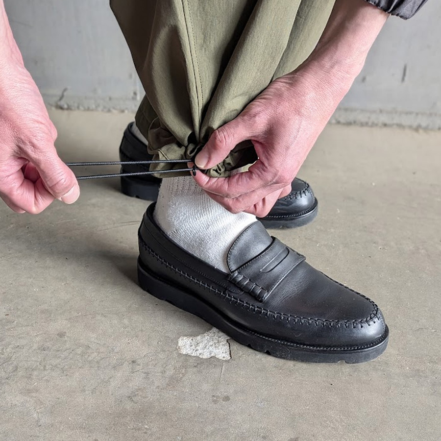 裾を絞って穿くだけでだいぶ印象も変わりますので色々と試してみて下さい。